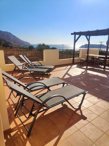 What a beautiful place to stay. Everything was perfect with gorgeous views of the mountains and sea looking out to Spinalonga (a must visit!). The place has everything we could have needed and was extremely clean and tidy. The beach and restaurants are only a 10 minute walk away which was perfect after a busy day of snorkelling. We were regulars at the Carob Tree for traditional Greek food and we would highly recommend! Plaka has a great bus service into Elounda and Agios Nikolios for around €2.30pp! We stayed for a week but would have stayed longer if we could have, it was just a perfect holiday!